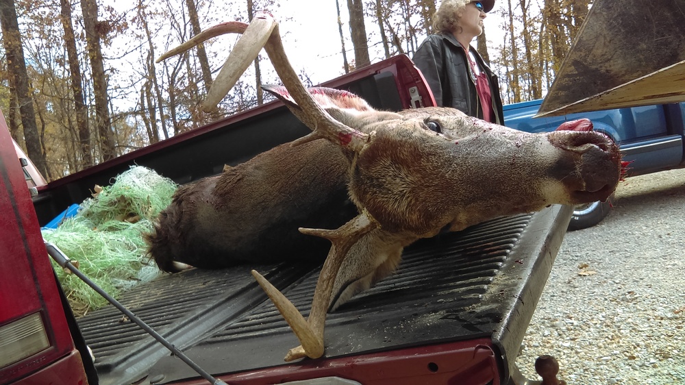 Keep at it Martin, it takes less than a minute to change the outcome of an entire season. I'm not sure why the Lord chose this year to bestow His blessings upon me, but I'll take it. My luck was terrible during the opening shotgun deer season this past weekend. The weather was having a bipolar issue with 70 degrees on Friday turning to thunderstorms Friday evening with 40 mph gusts of wind, turning to 29 degrees Saturday morning with 20 mph winds. Not the best conditions for tent camping (LOL). Anyway, Saturday was a jacked up mess but somehow I managed to harvest the biggest buck I've ever taken from public ground which ends my season earlier than ever before. Those target bucks I posted pics of from private ground will have to wait until next season. He's a broken brow tine main frame 10 with a 1 and 1/4 inch sticker off the back which gives him 10 score-able points and an additional point for the team. Here's one just for our team - I'll put more pics and the story in the deer hunting room for anyone interested. It's been great sharing the season with everyone - thank you. Good luck to you all as we close out the season and have a Happy Thanksgiving!3 points