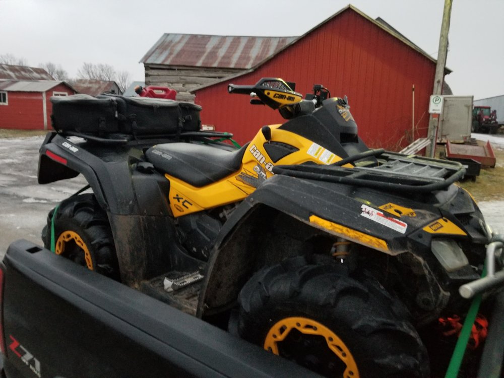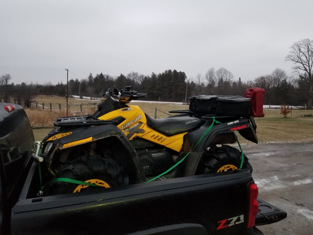 Well after 3 months I sold the Renegade 1000 I bought. Well I should say did a trade deal for a slightly older machine, with cash added from the guy who got my renegade. It was an absolute riot to squeeze the throttle on a 90hp atv but it just wasn't practical for me. I put a hitch on it and was planning on putting racks on the front and back to carry stuff. But finally came to terms it would be a better idea to just get an Outlander! Put an ad up looking for a trade and was offered this 2011 Outlander XXC 800. Drove down to the Toronto area on Monday and got it. Much happier with this! It's got all the bells and whistles and setup like the Renegade, but with a utility body on it instead.