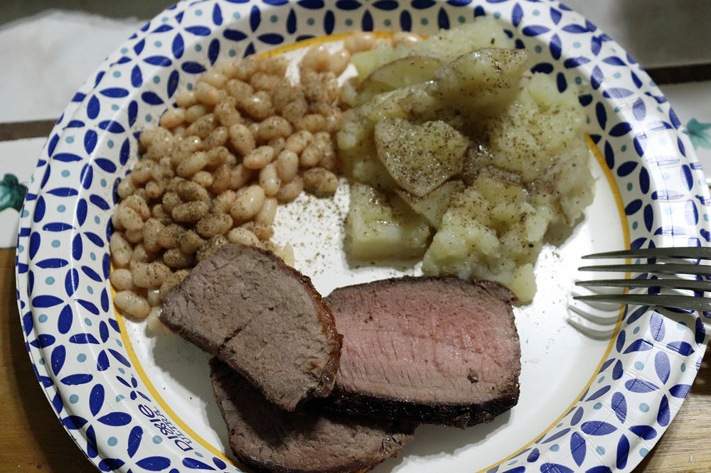 Grilled Axis backstrap with stewed potatoes and navy beans. That is some good eatin' right there. Need to find me a recipe for smoking backstrap - or is that not a good idea? Insight from someone who has done that would be appreciated.