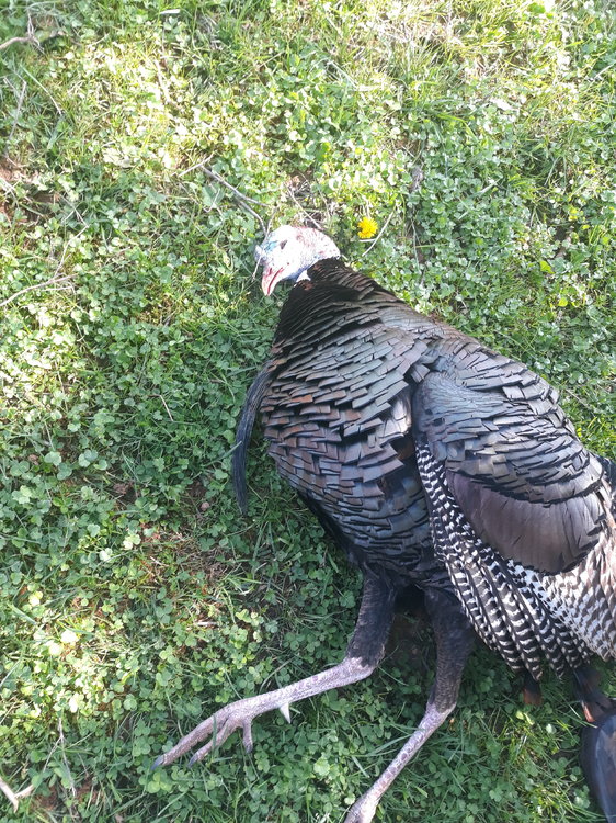 Pulled the trigger on Sunday the second day of the season a little after 9am... Got on him the day before but couldn't get anything done with him... Next morning he was roosted in the same spot but flew down into the field on top of the hill instead of the field I was set up in... After messing around the the jakes for a little bit I slowly made my way through the woods to the field on top of the hill and crawled out to set up my decoy and started calling... Apparently I got to the field at the right time because within 15 minutes he started gobbling but he was over the backside of the hill out of view... After some cat and mouse calling for 30 minutes and him gobbling at every call I made I went silent on him and he came into view at 30 yards and at that point I could see the waddles so I sent some #5 longbeards his direction... He had a 10 1/2" beard and 1 1/8" spurs.
